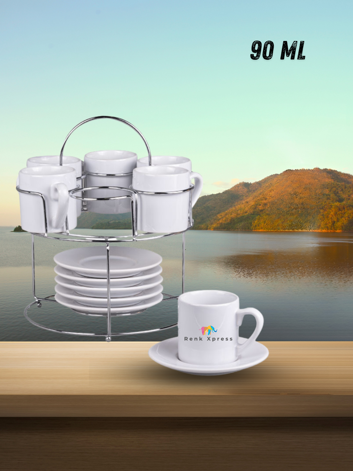 90 ml 6'li Kişiselleştirilebilir Yatay Standlı S Kulplu Porselen Kahve Fincan Takımı – Promosyon & Kurumsal Hediyelik
