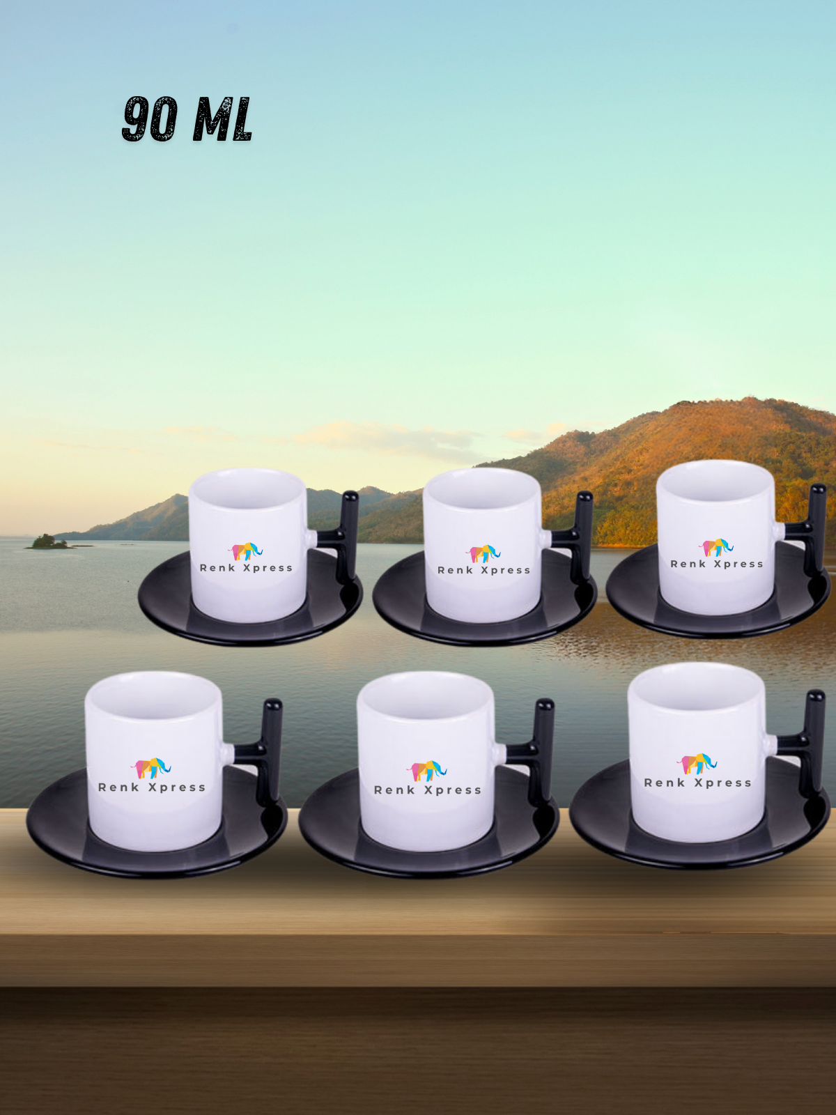 90 ml 6'li Kişiselleştirilebilir T Kulplu Porselen Kahve Fincan Takımı Siyah – Promosyon & Kurumsal Hediyelik